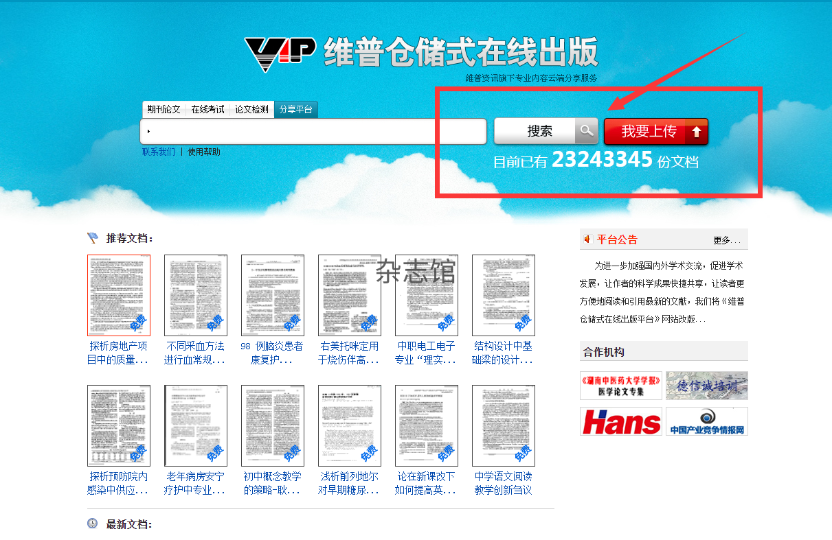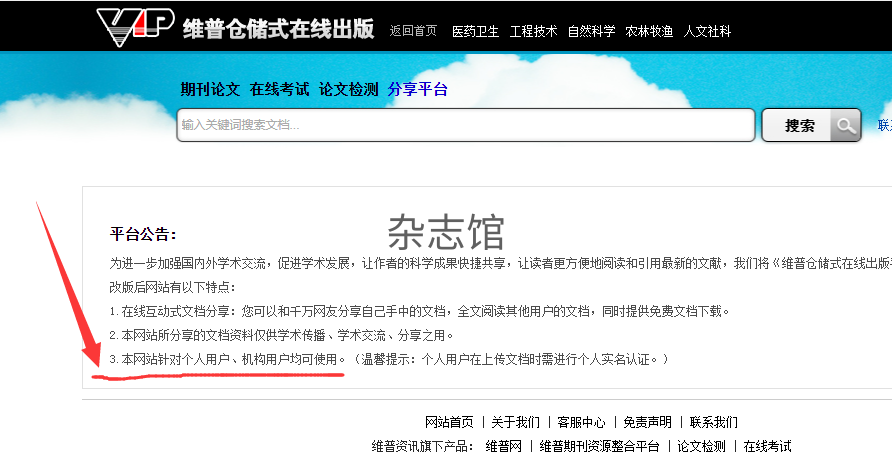 进入维普网后,会有个在线分享按钮,点进去就能进入维普仓储