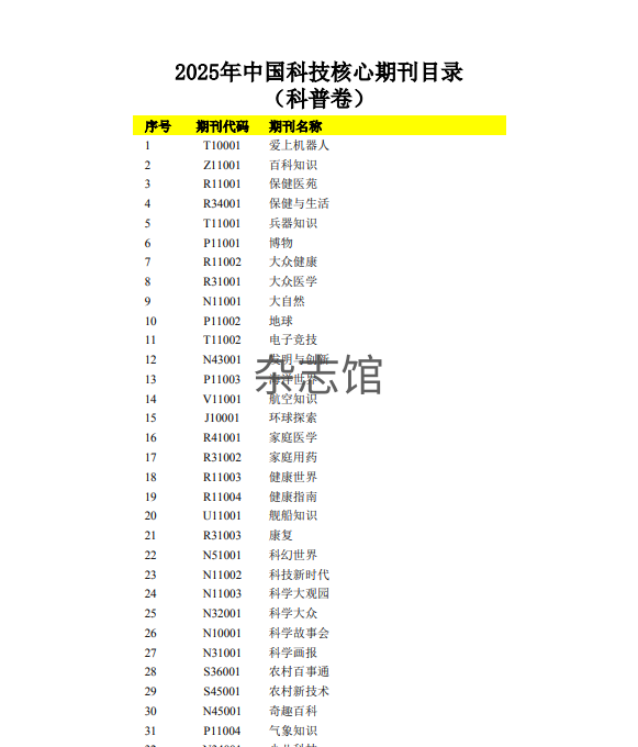 2025年科技核心期刊目录公布今年的科技核心将自科卷和社科卷合并为学术卷,然后新增了科普卷。