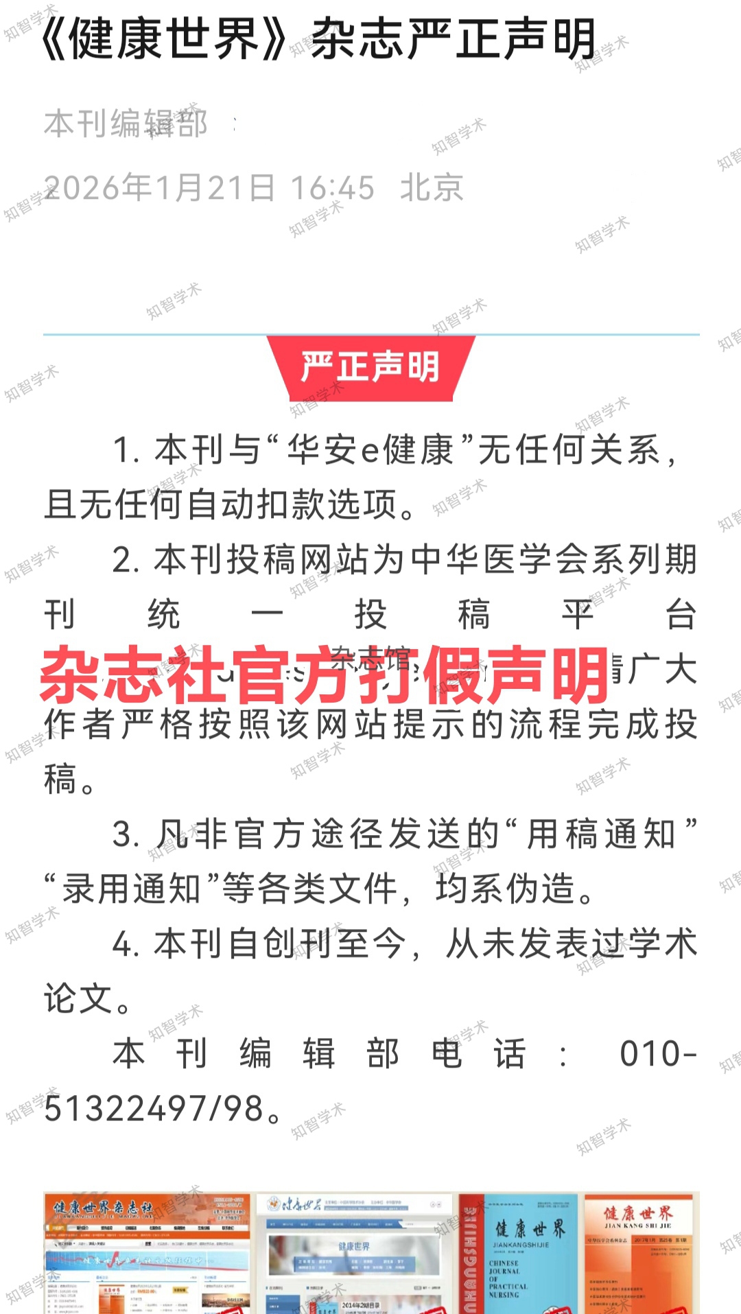 《健康世界》杂志严正声明